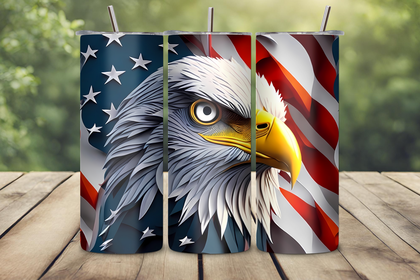 Majestic Eagle Patriotic Stripe Tumbler, Bald Eagle Travel Mag, Patriotic US Flag Coffee Cup, 20OZ Tumbler, 22OZ Tumbler, 30OZ Tumbler