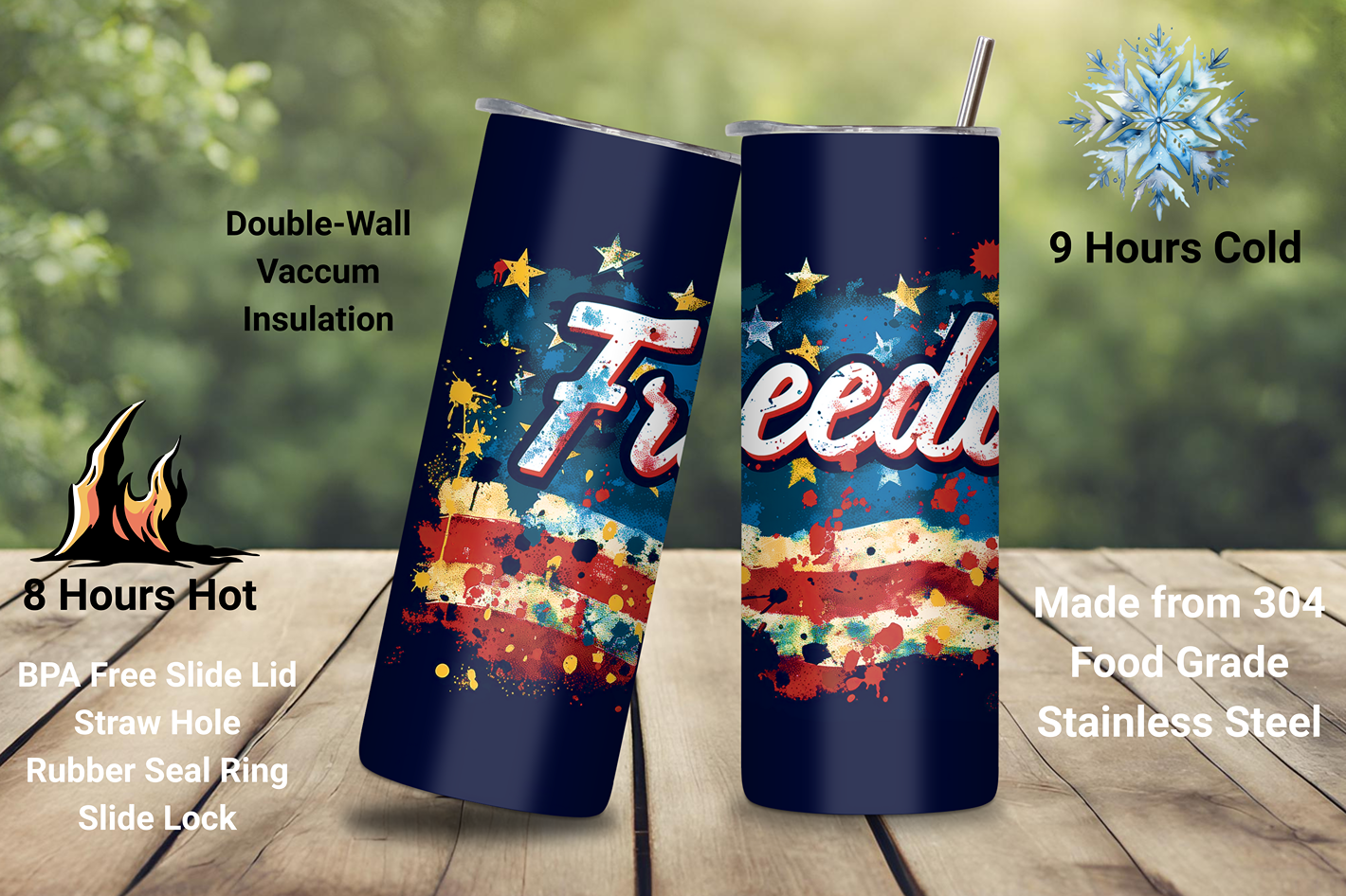 Vibrant Freedom Stars and Stripes Tumbler – 20OZ Slim, 22OZ Fatty, 30OZ Skinny, 20OZ Skinny with Two Screw-On Lids
